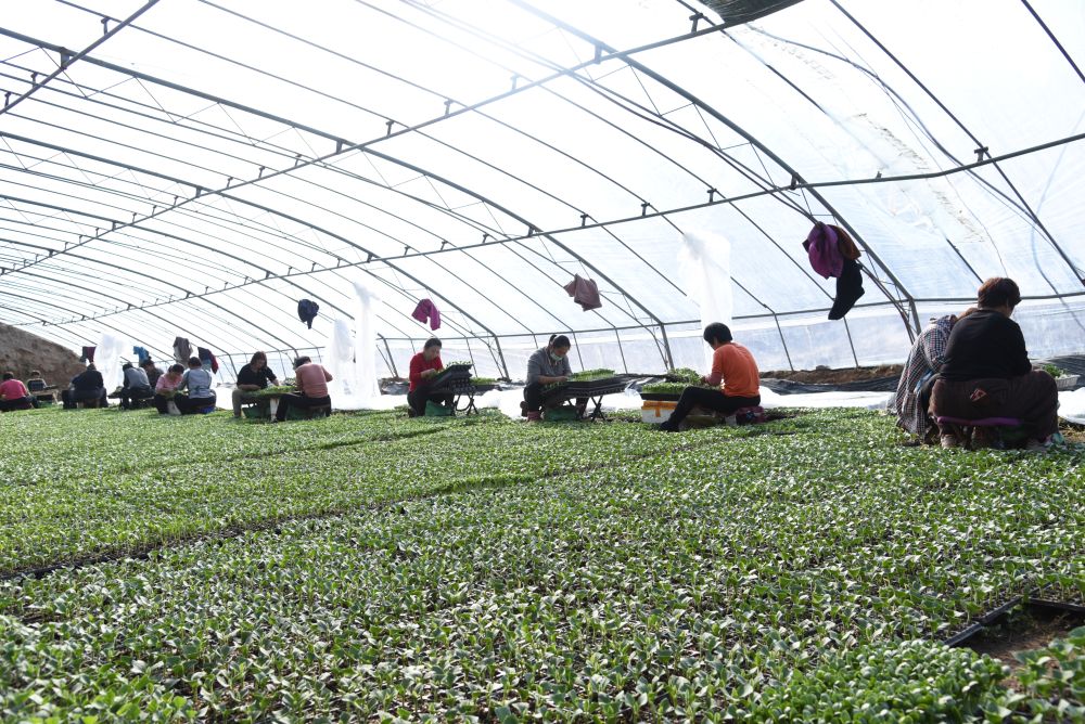 育苗温室内工人正在忙碌。新华社记者 崔翰超 摄