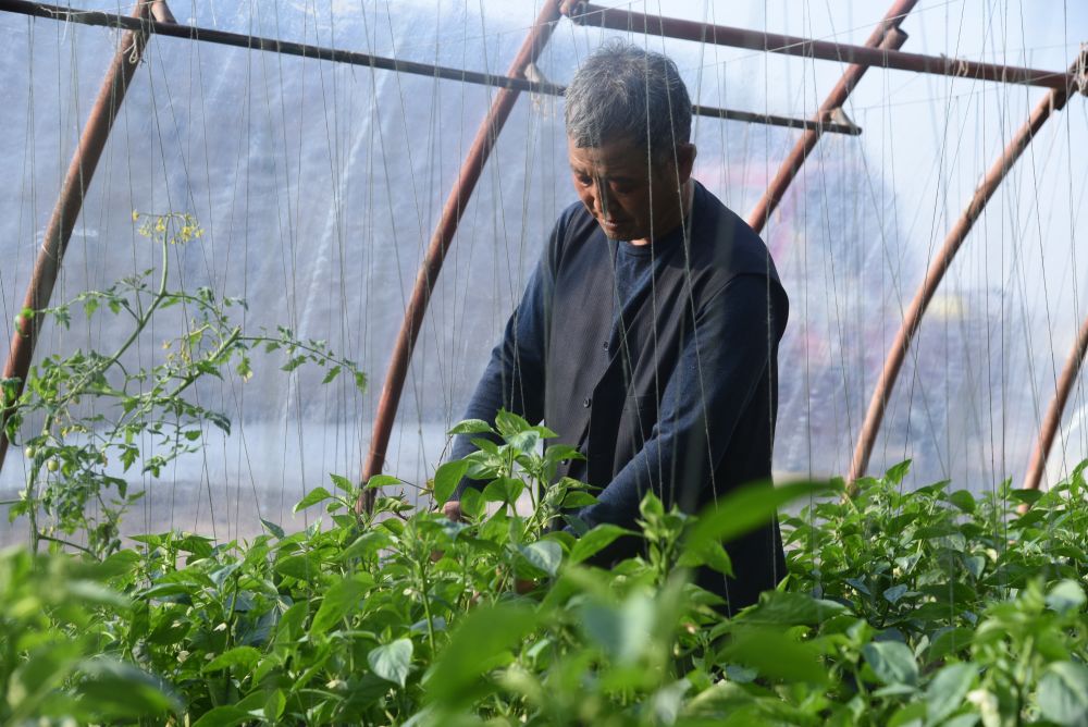 白宗忠正在日光温室里打理辣椒。新华社记者 崔翰超 摄